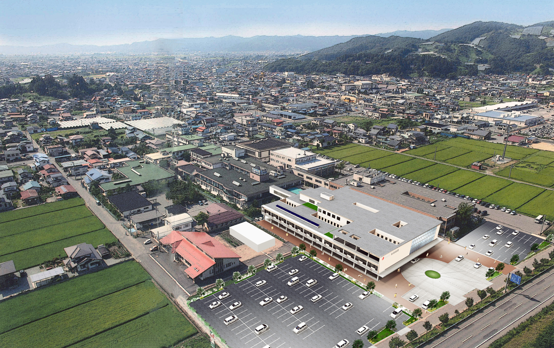 この施設は病院を中心として老人保健施設、グループホーム、デイケア施設、健康福祉施設、スポーツ施設等が展開する地域の中核複合医療福祉施設です。
