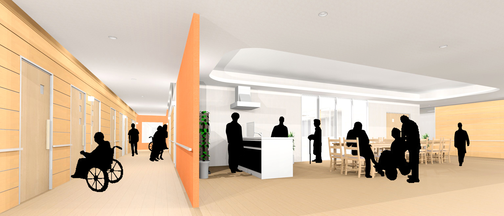 さらに、このストリートを軸にして利用者やスタッフのための回遊路を計画しました。